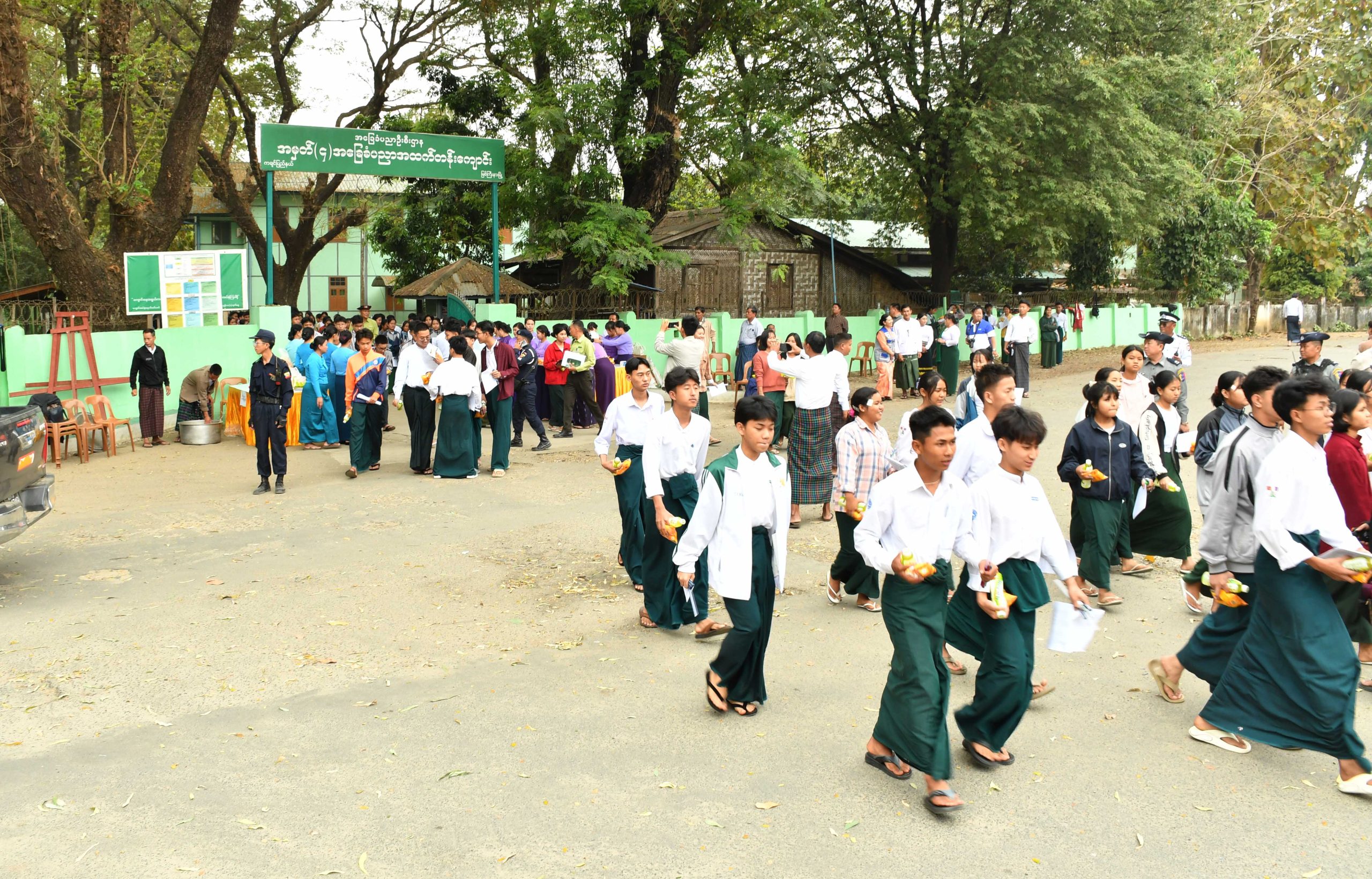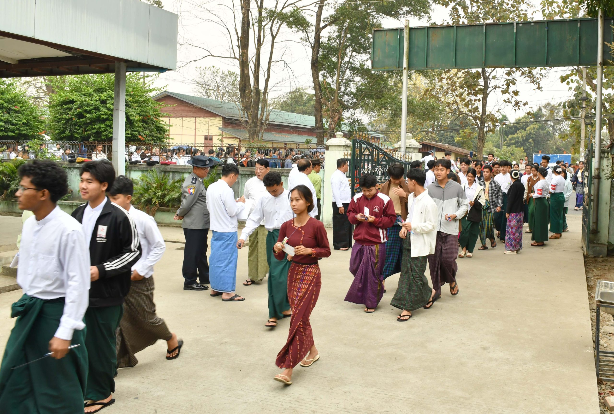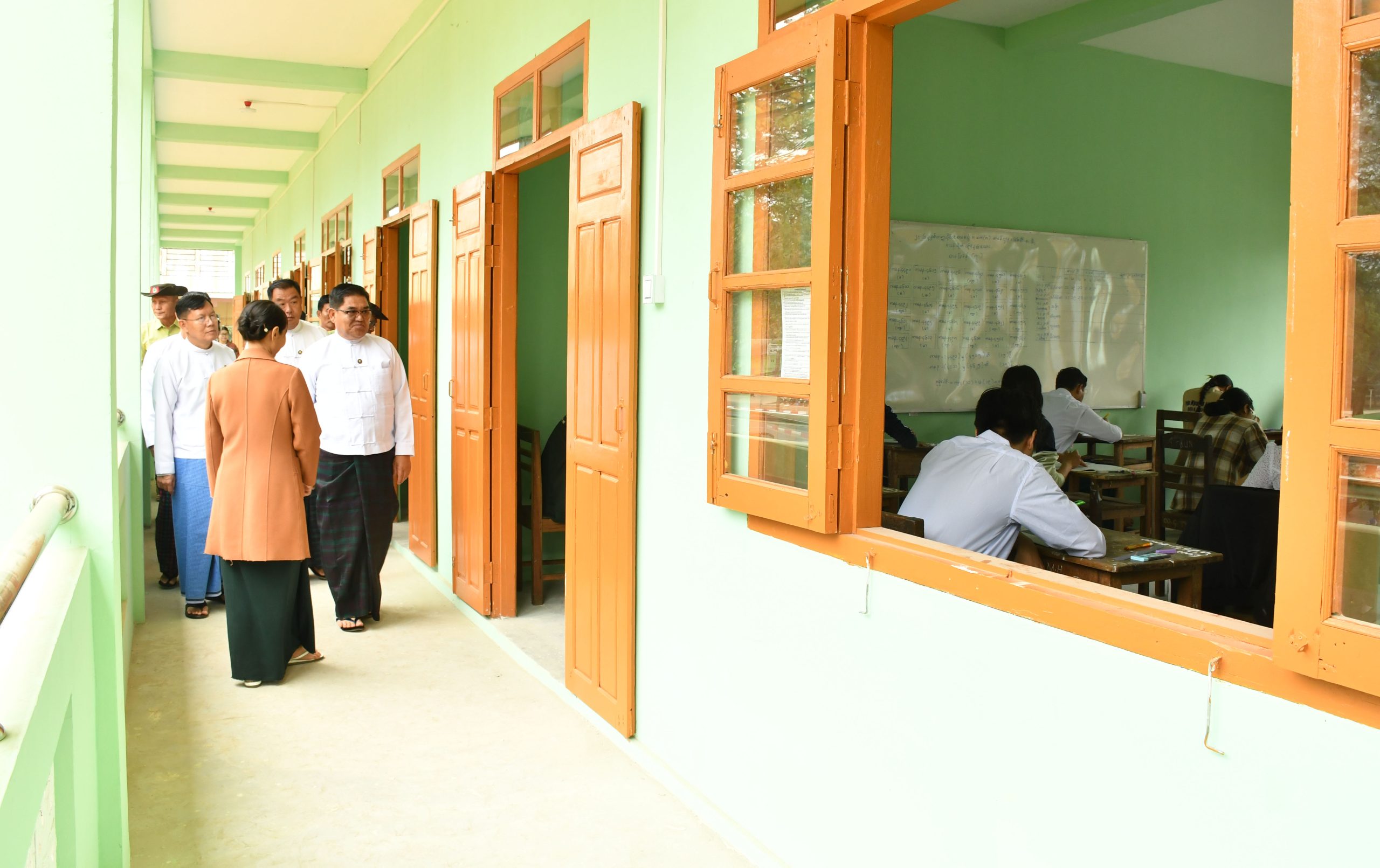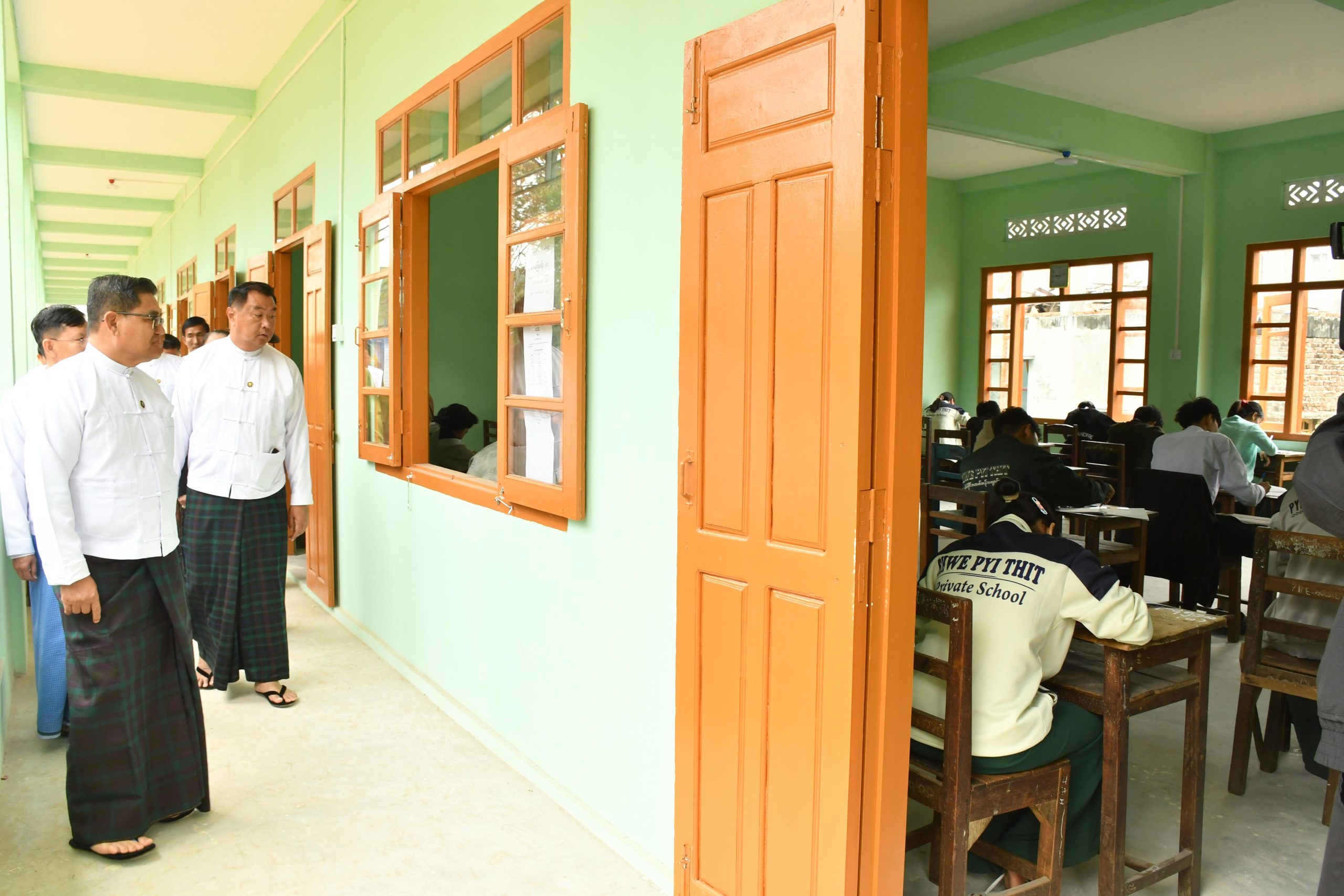 ယင်းနောက် မွန်းတည့် ၁၂ နာရီတွင် ပြည်နယ်ဝန်ကြီးချုပ်နှင့် ဇနီးဒေါ်နန်ဆိုင်း၊ တာဝန်ရှိသူများသည် အမှတ် (၄) အခြေခံပညာအထက်တန်းကျောင်း စာစစ်ဌာနသို့ သွားရောက်ခဲ့ကြပြီး မြောက်ပိုင်းတိုင်းစစ်ဌာနချုပ်တိုင်းမှူး ဗိုလ်ချုပ်အောင်ဇော်ထွေးနှင့် ဇနီး၊ တပ်မတော်အရာရှိကြီးများနှင့်အတူ အင်္ဂလိပ်စာဘာသာရပ်ကို အေးချမ်းစွာဖြေဆိုပြီး ပြန်လည်ထွက်ခွာလာခဲ့ကြသော အဆိုပါကျောင်းအပါအဝင် အ.ထ.က (နန့်ပေါင်)၊ အ.ထ.က (ပမ္မတီး)၊ အ.ထ.က (ခွဲ) ရှမ်းရွာ၊ အ.ထ.က (ခွဲ) ခလရ(၃၇)၊ အ.ထ.က (ခွဲ) ရှဒေါင်(၁)တို့မှ ကျောင်းသား/ ကျောင်းသူများ ပြည်နယ်အမျိုးသမီးရေးရာ အဖွဲ့ဝင်များနှင့် မိခင်နှင့်ကလေးစောင့်ရှောက်ရေးအဖွဲ့များနှင့်အတူ ရင်းရင်းနှီးနှီးနှုတ်ဆက်အားပေးခဲ့ကြပြီး အာဟာရဖြစ်စေသည့် အစားအစာမုန့်နှင့် ဖျော်ရေဘူးများကို ဖြန့်ဝေပေးခဲ့ကြသည်။