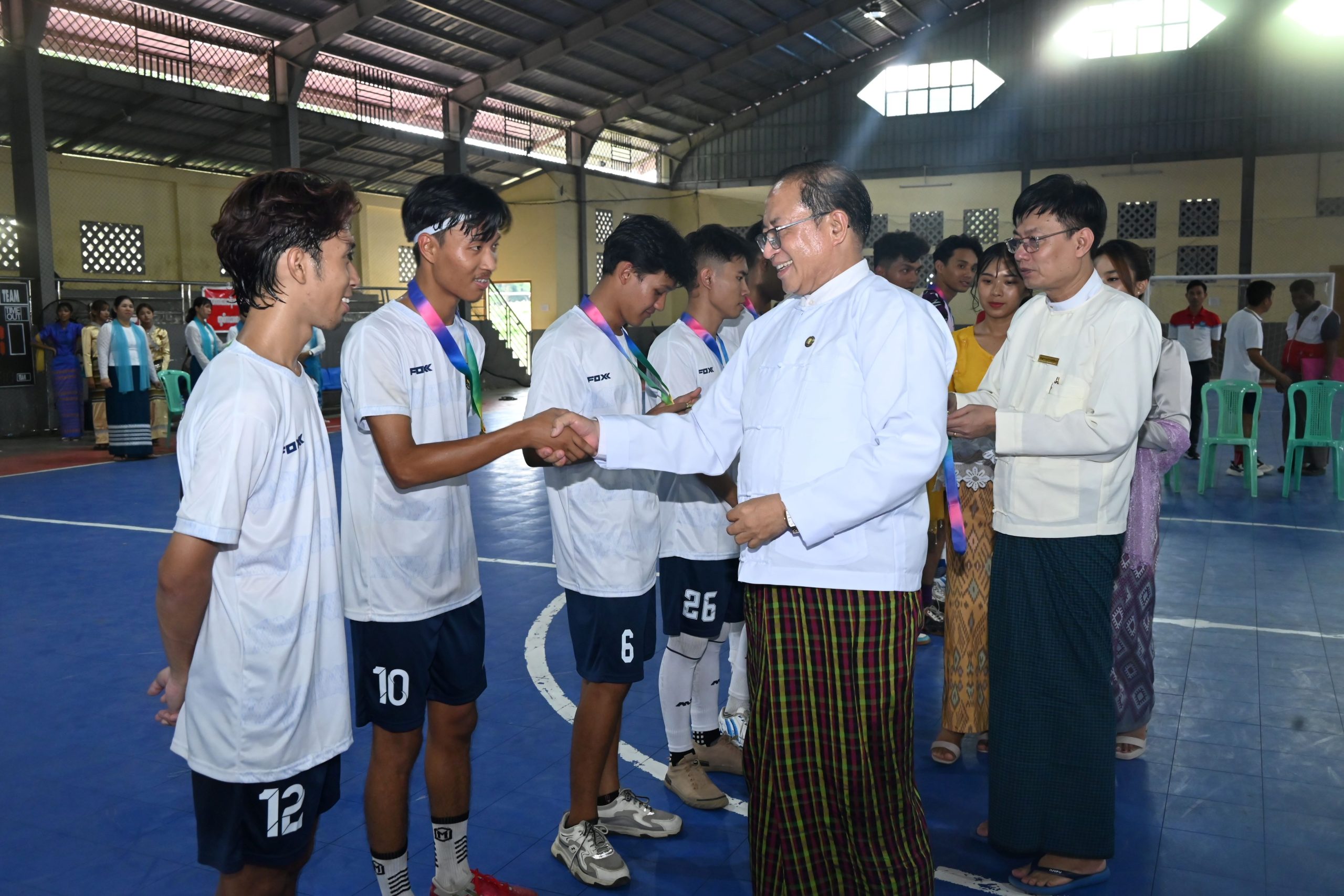 ယင်းနောက် ဆုချီးမြှင့်အခမ်းအနားကို ဆက်လက်ကျင်းပရာ ပြည်နယ်ဝန်ကြီးက ဘောလုံးအသင်းများအား အားကစားသည် နိုင်ငံအရင်းအမြစ်များအတွက် အလွန်အရေးကြီးကဏ္ဍတစ်ရပ်ဖြစ်ပါကြောင်း၊ ယခုလို ကျောင်းသားလူငယ်များအတွက် အားကစားပြိုင်ပွဲများ ကျင်းပပြုလုပ်ပေးခြင်းအားဖြင့် အစုအဖွဲ့၏ စည်းလုံးညီညွတ်မှုအင်အားနှင့် တက်ကြွနိုးကြားလန်းဆန်းမှုကို ရရှိစေမည်ဖြစ်ပါကြောင်း၊ သို့ဖြစ်ပါ၍ အားကစားသမားကောင်းတစ်ယောက်တွင်ရှိရမည့် ဇွဲနှင့် အားကစားစိတ်ဓာတ်ကိုအရင်းခံ၍ တရားသောယှဉ်ပြိုင်မှု၊ စည်းကမ်းရှိမှုနှင့် မိမိတို့၏ မူလရည်မှန်းချက် ပန်းတိုင်ဖြစ်သည့် IT ပညာရှင်တစ်ယောက်ဖြစ်လာရေး ကျန်းမာကြံ့ခိုင်ပြီး ဘက်စုံထူးချွန်ထက် မြက်သည့် IT ပညာရှင်များ ဖြစ်လာရန် ကြိုးစားကြစေလိုကြောင်း အားပေးပြောကြားသည်။