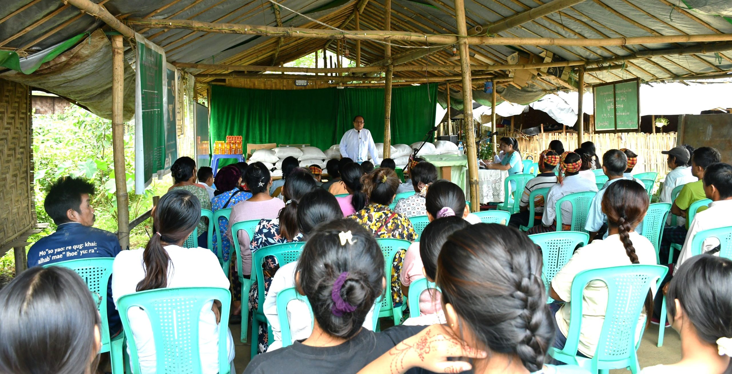 ထို့နောက် ယာယီတိမ်းရှောင်စခန်းမှ တာဝန်ခံ ဦးဟောင်းဂျုံးက စခန်းအတွက် လိုအပ်သည်များအား တင်ပြခဲ့ရာ ပြည်နယ်ဝန်ကြီးဦးတိန့်ဆောင်က တာဝန်ရှိသူများနှင့် ပေါင်းစပ်ညှိနှိုင်း ဖြည့်ဆည်းဆောင်ရွက်ပေးနိုင်ရေး စီစဉ်ဆောင်ရွက်ပေးခဲ့ပြီး ယာယီတိမ်းရှောင်စခန်းမှ တာဝန်ရှိသူများက ပြည်နယ်ဝန်ကြီးအား ရိုးရာဓား၊ ရိုးရာလွယ်အိပ်နှင့် ပလိုင်းတို့အား ဂါရဝပြုပေးအပ်မှုကို လက်ခံရယူပြီး ပြည်နယ်ဝန်ကြီးက နိဂုံးချုပ်အမှာစကားပြန်လည်ပြောကြားခဲ့ကြောင်း သိရသည်။