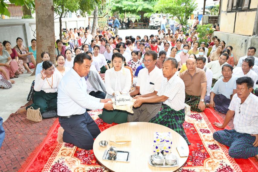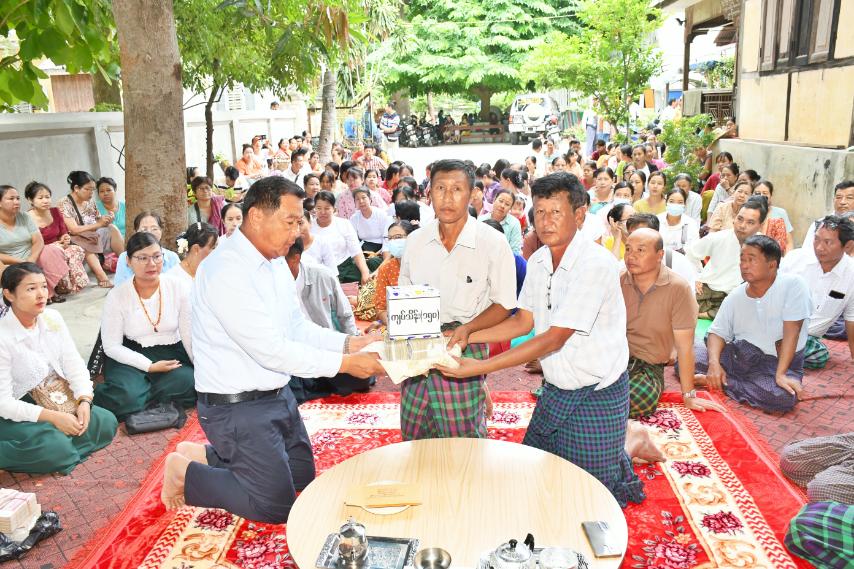 ကချင်ပြည်နယ်၊ ဗန်းမော်ခရိုင်အတွင်း အကြမ်းဖက်မှုဖြစ်စဉ်များကြောင့် ထွက်ပြေးတိမ်းရှောင်ခဲ့ကြပြီး မန္တလေးမြို့၌ ခိုလှုံနေထိုင်လျက်ရှိသော ဝန်ထမ်းများနှင့် ပြည်သူများအား ကချင်ပြည်နယ်အစိုးရအဖွဲ့က ထောက်ပံ့ငွေများ ပေးအပ်ပွဲ အခမ်းအနားကို ဇွန် ၂၄ ရက် နံနက် ၁၀ နာရီက မန္တလေးမြို့၊ ချမ်းအေးသာစံမြို့နယ်၊ ဂွေးချိုတိုက်၊ ရန်ကုန်အုတ်ကျောင်း၌ ကျင်းပပြုလုပ်ရာ ပြည်နယ်အစိုးရအဖွဲ့ကိုယ်စား ပြည်နယ်တိုင်းရင်းသားရေးရာဝန်ကြီး ဦးကျော်မင်းခိုင် တက်ရောက်သည်။