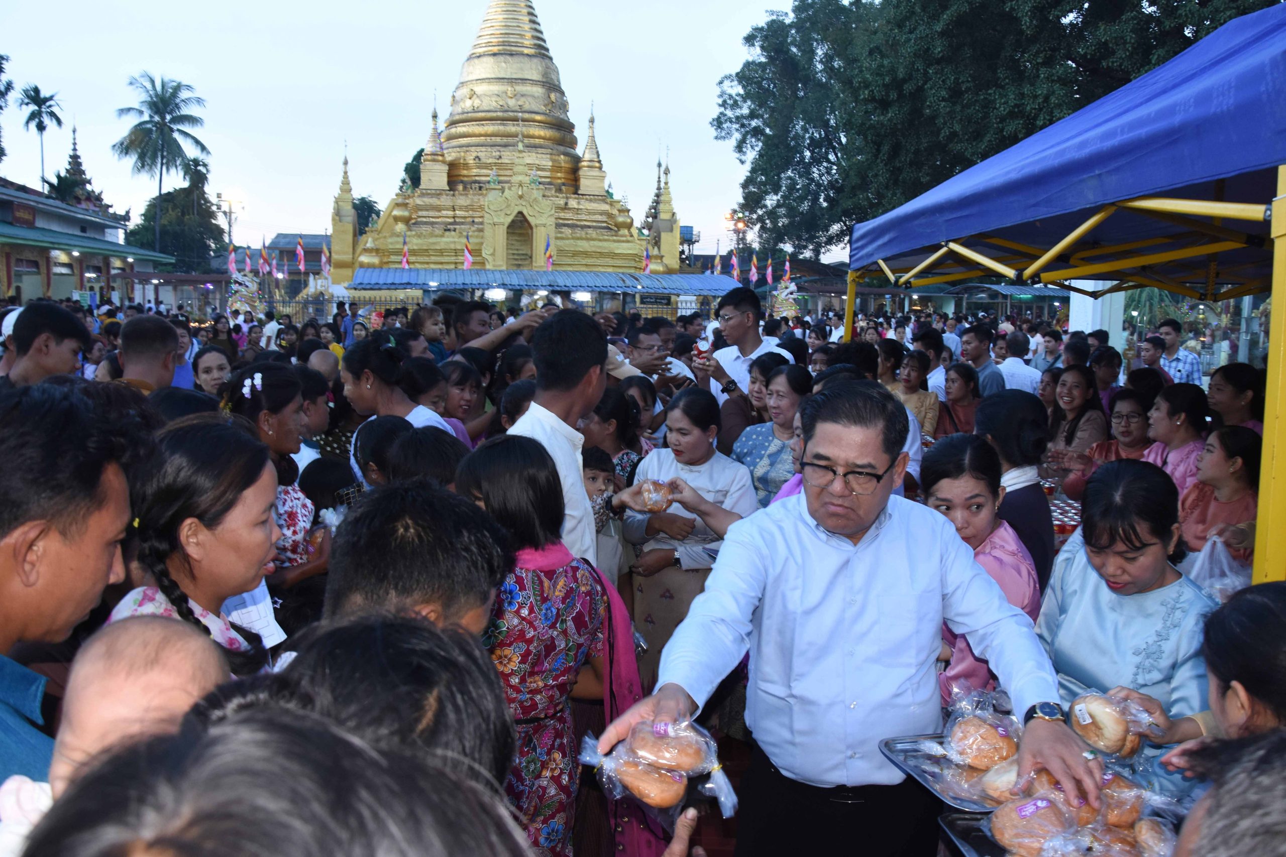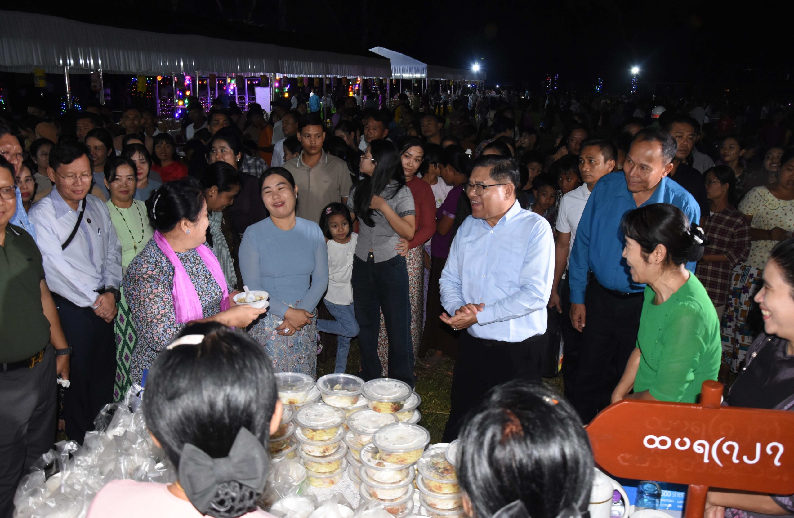 ယင်းနောက် ပြည်နယ်ဝန်ကြီးချုပ်နှင့် အဖွဲ့ဝင်များသည် မင်းရပ်ရပ်ကွက်၊ ဧရာဝတီမြစ်ကမ်းဘေးရှိ ပြည်သူ့ရင်ပြင်နှင့် ဧရာဦးပန်းခြံအတွင်း သီတင်းကျွတ်ပွဲတော်အဖြစ် အများပြည်သူ လွတ်လပ်ပျော်ရွှင်စွာ အနားယူအပန်းဖြေနိုင်ရေးအတွက် ရောင်စုံစလိုက်မီးများ အလှဆင်ထားခြင်း၊ ဒေသခံတိုင်းရင်းသားအဆိုတော်များ၏ စင်တင်တေးဂီတဖျော်ဖြေမှု အစီအစဉ်များဖြင့် ယခင်နှစ်များနှင့်မတူ လာရောက်လည်ပတ်ပျော်ရွှင်သူများဖြင့် စည်ကားများပြားနေမှုကို လှည့်လည်ကြည့်ရှုအားပေးခဲ့ကြ ပြီး ပြည်နယ်ဝန်ကြီးချုပ်နှင့် တာဝန်ရှိသူများက သီတင်းကျွတ်ပွဲတော်ကာလအတွင်း ဌာနဆိုင်ရာ များ၏ အလှည့်ကျကျွေးမွေးသည့် စတုဒီသာများကို ပြည်သူများအား လိုက်လံဝေငှကျွေးမွေးခဲ့ကြသည်။
