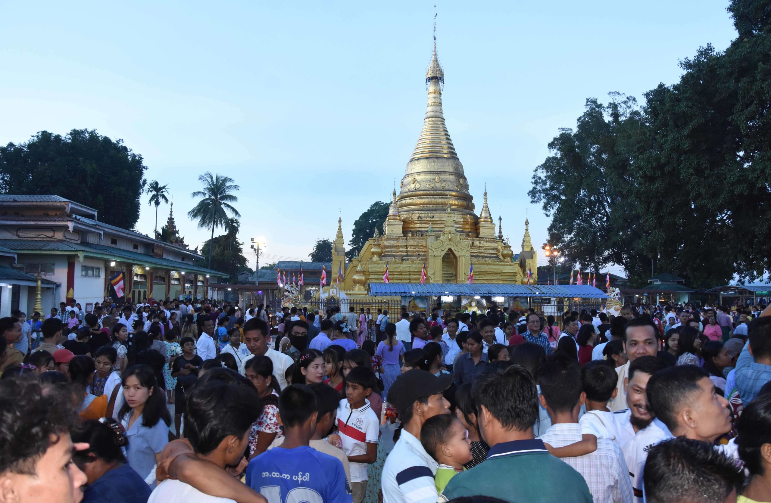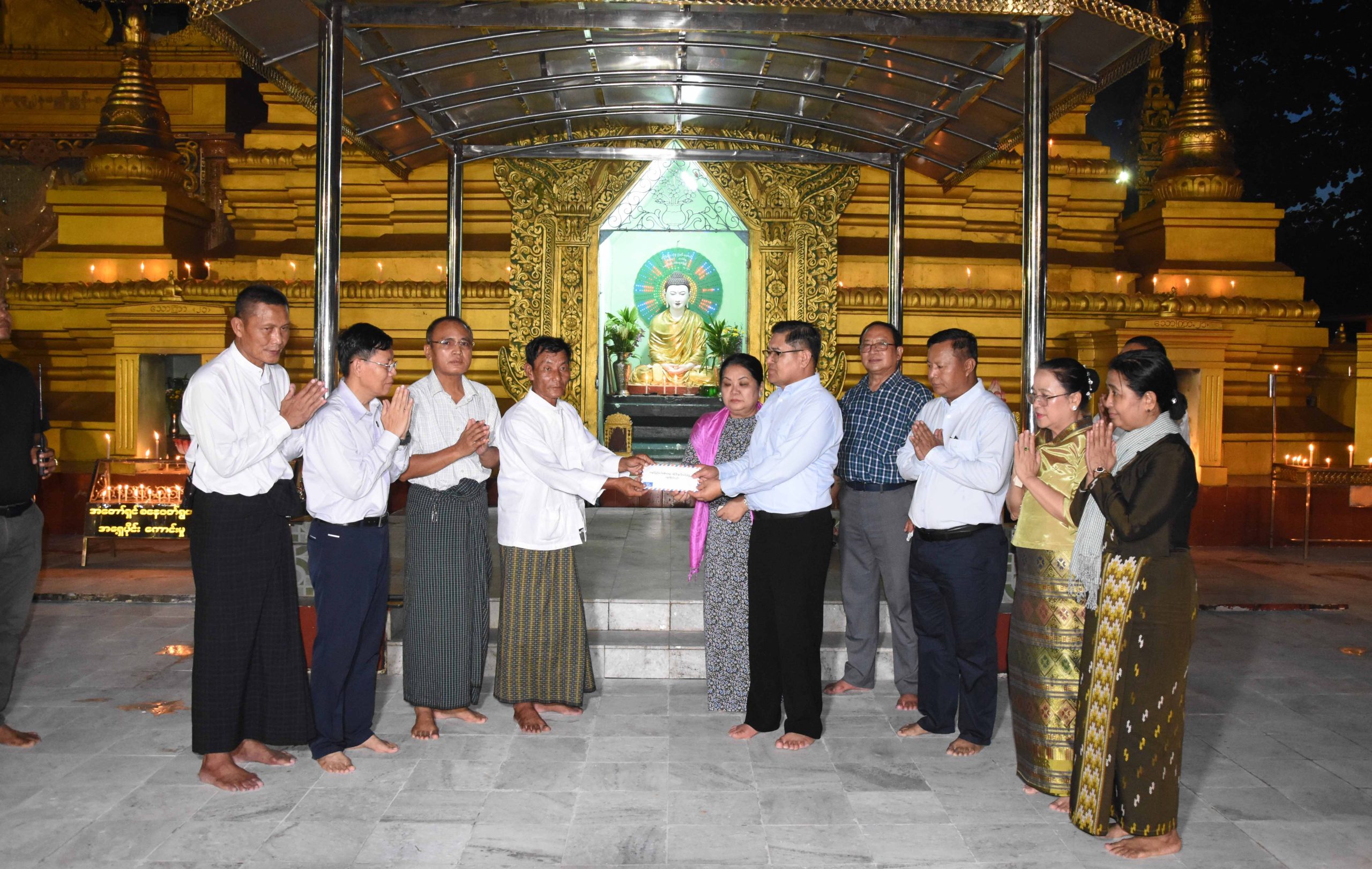 ထို့နောက် ပြည်နယ်ဝန်ကြီးချုပ်နှင့် အဖွဲ့ဝင်များသည် မြစ်ကြီးနားမြို့ ရန်ကြီးအောင်ရပ်ကွက် အတွင်းရှိ ရှေးဟောင်းသမိုင်းဝင် အံတော်ရှင်စေတီတော်မြတ်ကြီးသို့ သွားရောက်ခဲ့ကြပြီး အန္တရာယ်ကင်းပရိတ်တရားတော်များ ရွတ်ဖတ်ပူဇော်ခြင်း၊ ဘုရားဖူးကုသိုလ်ကောင်းမှုဒါနပြုရန် လာရောက်ကြသည့် ပြည်သူများနှင့်အတူ ဆီမီး (၁၀၀၀) ထွန်းညှိပူဇော်ခဲ့ကြကာ စေတီတော်အား လက်ယာရစ်ပတ်ပူဇော်ခဲ့ကြပြီး မြို့နယ်အထွေထွေအုပ်ချုပ်ရေးဦးစီးဌာန ဝန်ထမ်းများက ဆန်ပြုတ် စတုဒီသာ ဖြင့် ဧည့်ခံကျွေးမွေးမှုများကို လိုက်လံကြည့်ရှုအားပေးခဲ့ကြသည်။