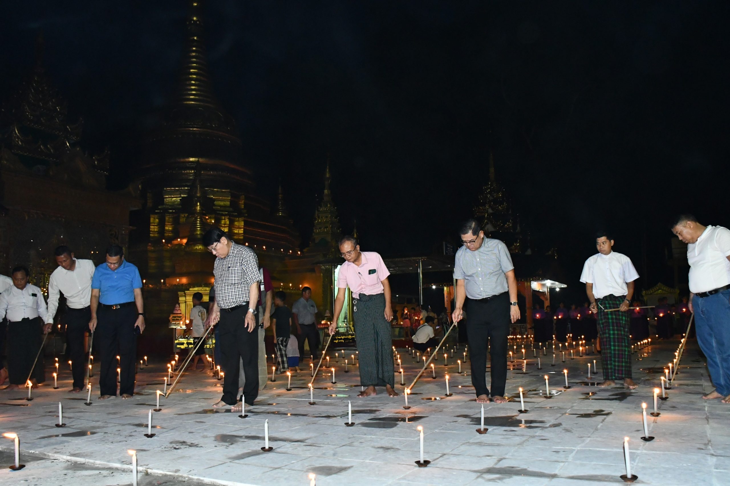 ထို့နောက် ပြည်နယ်ဝန်ကြီးချုပ်နှင့် အဖွဲ့ဝင်များသည် မြစ်ကြီးနားမြို့ ရန်ကြီးအောင်ရပ်ကွက် အတွင်းရှိ ရှေးဟောင်းသမိုင်းဝင် အံတော်ရှင်စေတီတော်မြတ်ကြီးသို့ သွားရောက်ခဲ့ကြပြီး အန္တရာယ်ကင်းပရိတ်တရားတော်များ ရွတ်ဖတ်ပူဇော်ခြင်း၊ ဘုရားဖူးကုသိုလ်ကောင်းမှုဒါနပြုရန် လာရောက်ကြသည့် ပြည်သူများနှင့်အတူ ဆီမီး (၁၀၀၀) ထွန်းညှိပူဇော်ခဲ့ကြကာ စေတီတော်အား လက်ယာရစ်ပတ်ပူဇော်ခဲ့ကြပြီး မြို့နယ်အထွေထွေအုပ်ချုပ်ရေးဦးစီးဌာန ဝန်ထမ်းများက ဆန်ပြုတ် စတုဒီသာ ဖြင့် ဧည့်ခံကျွေးမွေးမှုများကို လိုက်လံကြည့်ရှုအားပေးခဲ့ကြသည်။