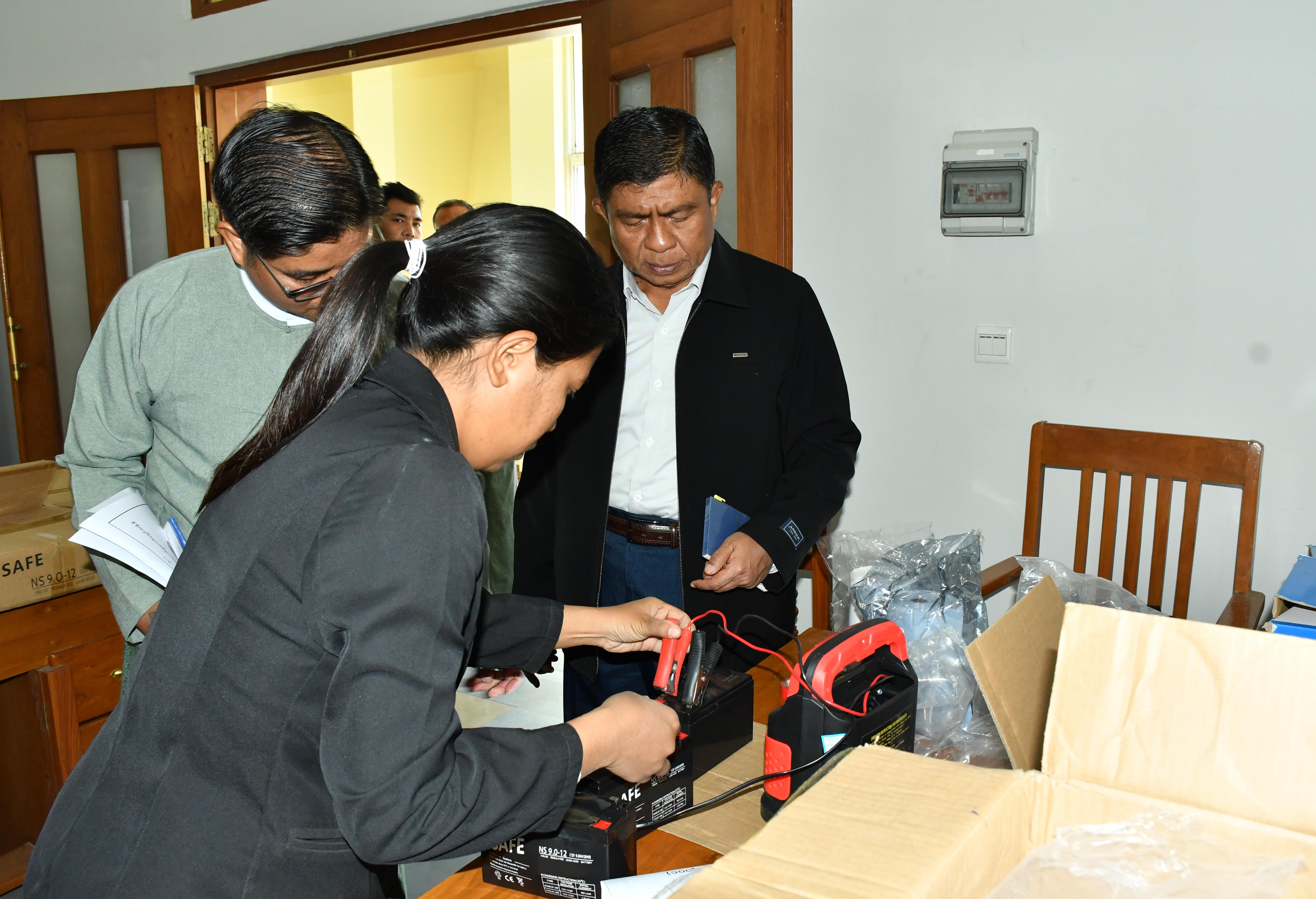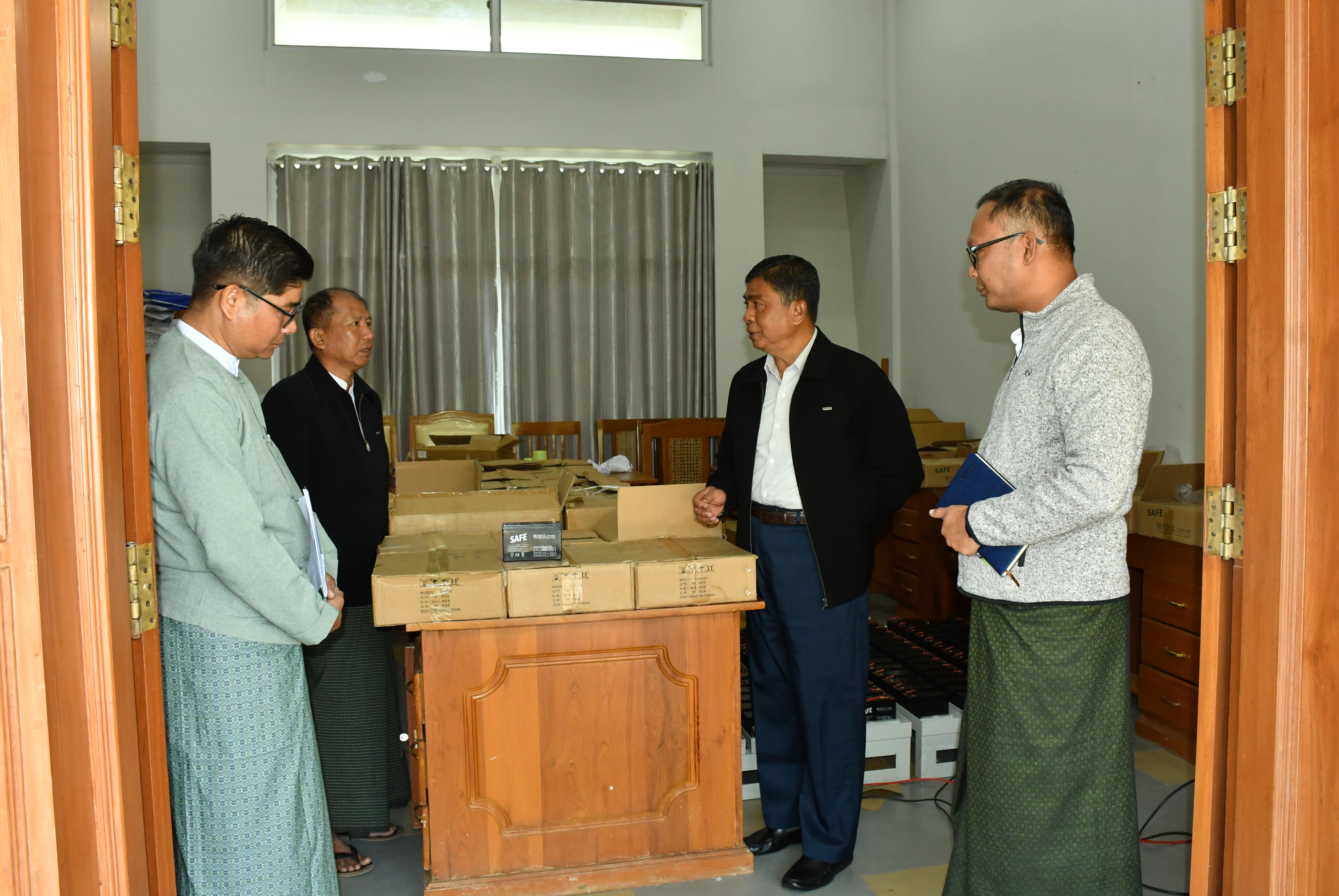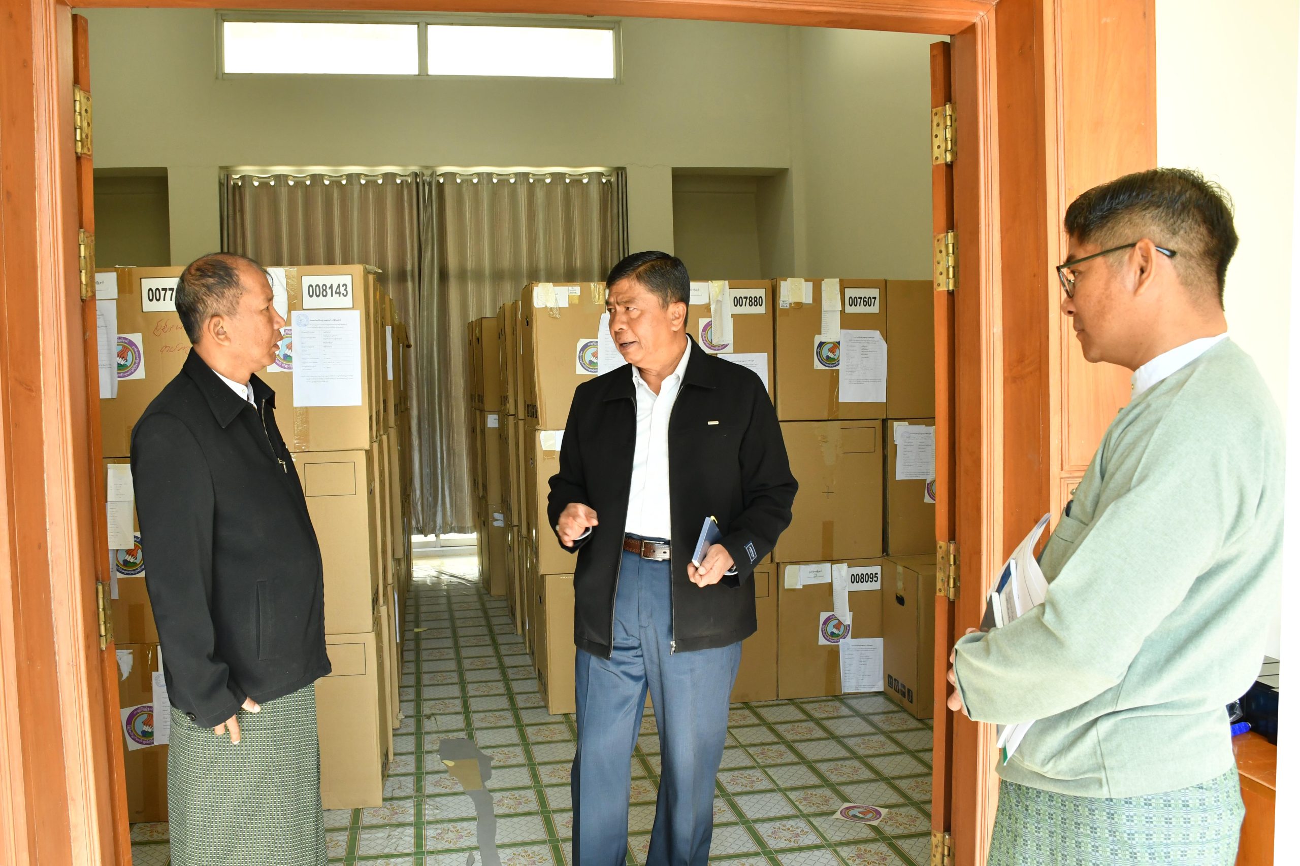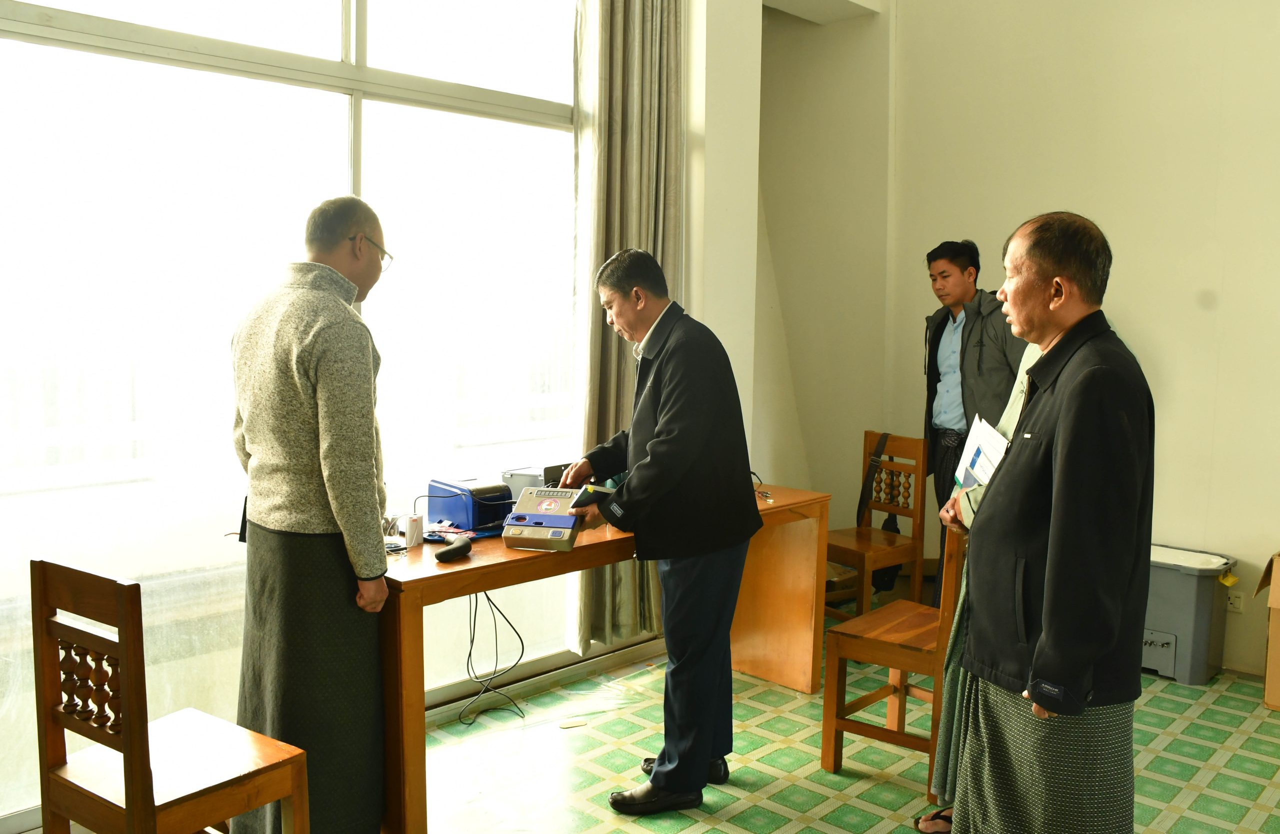 ရှေးဦးစွာ ပြည်နယ်တာဝန်ခံနှင့် တာဝန်ရှိသူများသည် ပြည်နယ်လွှတ်တော်ရုံး၌ မြန်မာအီလက်ထရောနစ် မဲပေးစက်များနှင့် ဆက်စပ်ပစ္စည်းများကို တာဝန်ရှိသူများက စနစ်တကျစစ်ဆေး၍ ပြန်လည်အပ်နှံထားရှိမှုအခြေအနေများနှင့် မဲပေးစက်တွင် အသုံးပြုခဲ့သည့်(၁၂)ဗို့ ဘက်ထရီအိုးများကိုပြန်လည်အားသွင်း၍ စစ်ဆေးဆောင်ရွက်နေမှုအခြေအနေများကို လှည့်လည်ကြည့်ရှုစစ်ဆေးခဲ့ကာ လိုအပ်သည်များကို တာဝန်ရှိသူများနှင့် ပေါင်းစပ်ညှိနှိုင်းဆောင်ရွက်ပေးခဲ့သည်။