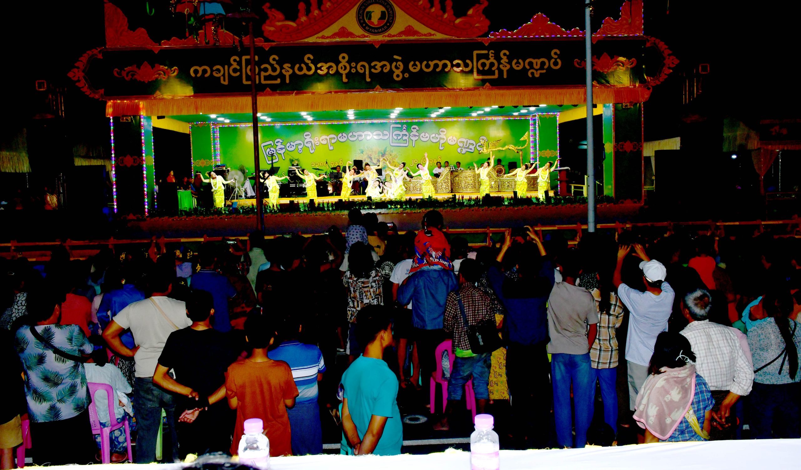ထို့အတူ ယမန်နေ့ ညပိုင်းတွင် ဗဟိုမဏ္ဍပ်၌ ဝန်ကြီးဌာနကိုယ်စားပြု ယိမ်းအဖွဲ့များနှင့် ရပ်ကွက် ယိမ်းအဖွဲ့များက ကိုယ်ပိုင်သံစဉ်/ ကိုယ်ပိုင်စာသား/ ကိုယ်ပိုင်ဆိုင်းဝိုင်းဖြင့် လည်းကောင်း၊ ကိုပိုင်သံ စဉ်/ ကိုယ်ပိုင်စာသား/ CD ဖြင့်လည်းကောင်း၊ CD တေးသီချင်းများဖြင့် လည်းကောင်း ယှဉ်ပြိုင်လျက်ရှိရာ သင်္ကြန်ချစ်သူပရိတ်သတ်များနှင့်အတူ ပြည်နယ်ဝန်ကြီးချုပ်ဦးခက်ထိန်နန်နှင့် ဇနီးဒေါ်နန်ဆိုင်း၊ ပြည်နယ်အစိုးရအဖွဲ့ဝင် ဝန်ကြီးများနှင့် ၎င်းတို့၏ ဇနီးများ၊ ဌာနဆိုင်ရာတာဝန်ရှိ သူများက ကြည့်ရှုအားပေးခဲ့ကြကာ ပြိုင်ပွဲဝင်ယိမ်းအဖွဲ့များ၊ ဆိုင်းဝိုင်းအဖွဲ့များနှင့် ဝန်ထမ်းများအား ချီးမြှင့်ငွေများကို ပေးအပ်ချီးမြှင့်ခဲ့ကြကြောင်း သိရသည်။
