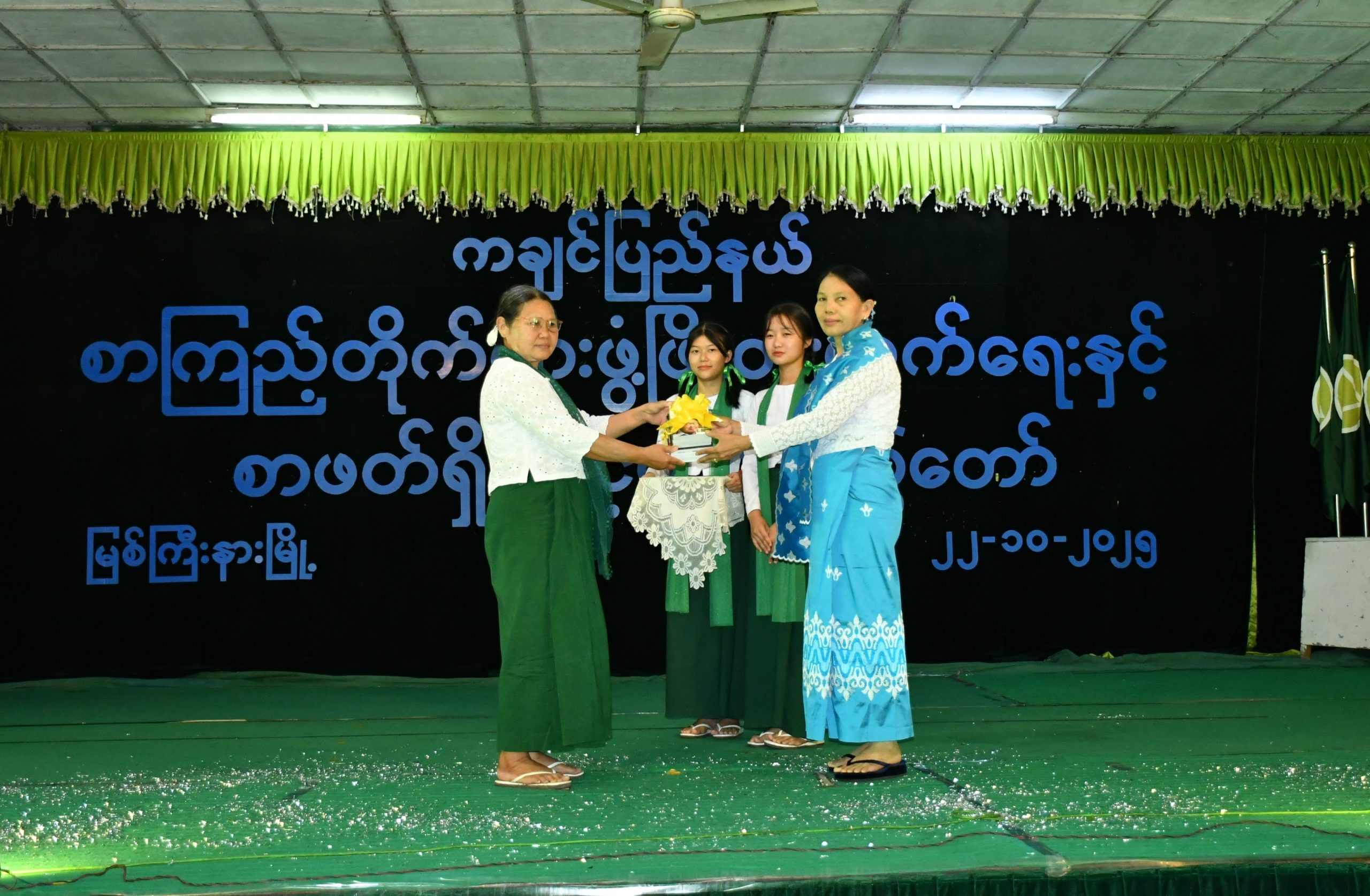 ဆက်လက်၍ ပြည်နယ်ပြန်ကြား‌ရေးနှင့်ပြည်သူ့ဆက်ဆံရေးဦးစီးဌာန၊ ပြည်နယ်ဦးစီးမှူး ဒေါ်မာလာဝင်းက အဆိုပါ‌ ကျောင်းစာကြည့်တိုက်အတွက် သုတ/ ရသ စာအုပ်စာစောင်များကိုလှူဒါန်းပေးပြီး ပြည်နယ်ဦးစီးမှူးနှင့် တာဝန်ရှိသူများက စာကြည့်တိုက်များ ဖွံ့ဖြိုးတိုးတက်ရေးနှင့် စာဖတ်ရှိန်မြှင့်တင်ရေးပွဲတော်တွင် လူငယ်များအတွက် ကျင်းပပေးခဲ့သော ကာယဉာဏစွမ်းရည် ပြိုင်ပွဲများဖြစ်သည့် ထက်၊ လယ်၊ မူအဆင့် ကျပန်းစကားပြော၊ စာစီစာကုံးနှင့် ပုံပြင်ပြောပြိုင်ပွဲများ တွင် ဆုရရှိခဲ့ကြသူများနှင့် စာဖတ်ဝိုင်းတွင် ပါဝင်ဆွေးနွေးခဲ့ကြသည့်‌ ကျောင်းသား/‌‌‌ကျောင်းသူများအား ဂုဏ်ပြုမှတ်တမ်းလွှာနှင့် ဂုဏ်ပြုချီးမြှင့်ငွေများကိုလည်းကောင်း၊  သရုပ်ပြအကအဖွဲ့များအတွက် ဂုဏ်ပြုချီးမြှင့်ငွေများကိုလည်းကောင်း အသီးသီးပေးအပ်ချီးမြှင့်ခဲ့ကြသည်။