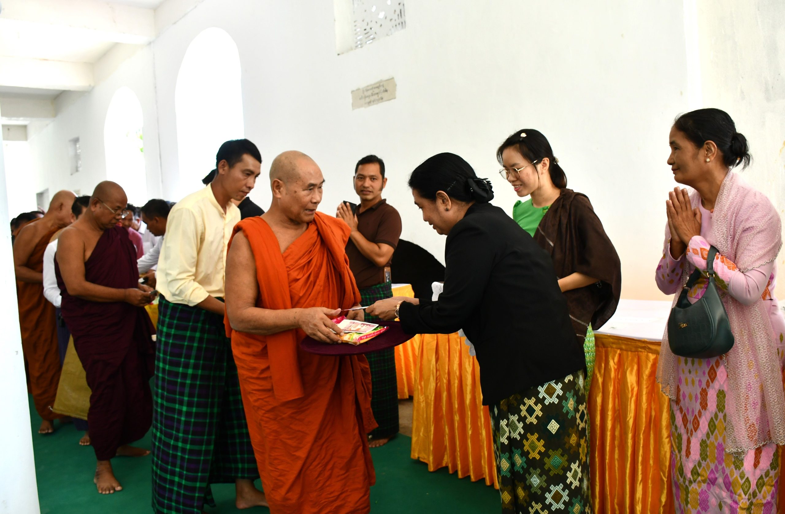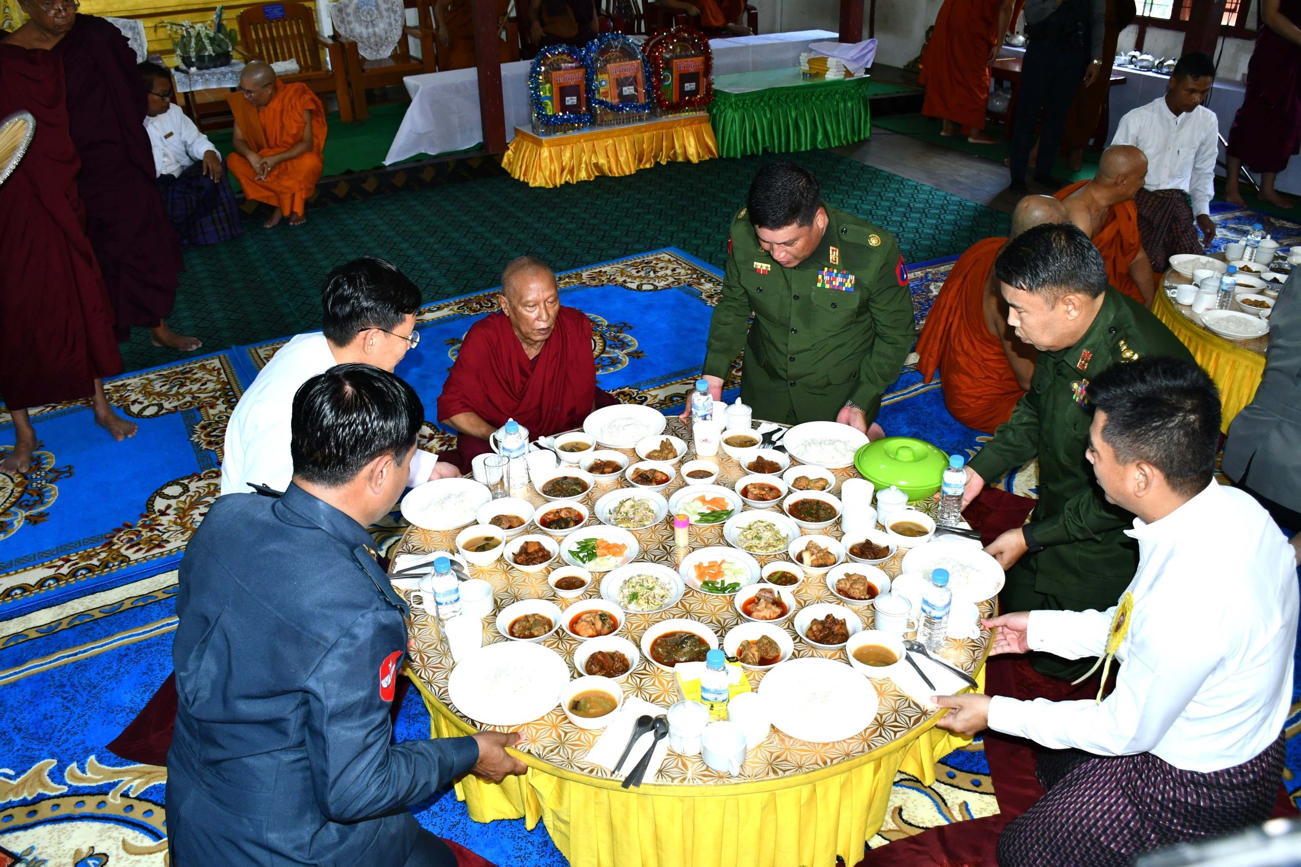 ယင်းနောက် ဘုရားအမှူးပြုသော ဆရာတော်သံဃာတော်များအား တိုင်းမှူးနှင့် တပ်မတော်အရာရှိကြီးများ၊ ပြည်နယ်တရားလွှတ်တော်တရားသူကြီးချုပ် ဒေါ်အေးအေးမော်၊ ပြည်နယ်အစိုးရ အဖွဲ့ဝင် လုံခြုံရေးနှင့်နယ်စပ်ရေးရာဝန်ကြီး ဗိုလ်မှူးကြီးကျော်သူရနှင့် ပြည်နယ်အစိုးရအဖွဲ့ဝင်ဝန်ကြီးများ၊ မြောက်ပိုင်းတိုင်းစစ်ဌာနချုပ် ကွပ်ကဲမှုအောက်ရှိ တပ်ရင်းတပ်ဖွဲ့များက ဆွမ်း၊ ဆေးစသည့် လှူဖွယ်ပစ္စည်းများနှင့် ဝတ္ထုငွေများကို ဆက်ကပ်လှူဒါန်းခဲ့ကြပြီး ဆရာတော်သံဃာတော်များ အား နေ့ဆွမ်းဆက်ကပ်လှူဒါန်းခဲ့ကြသည်။