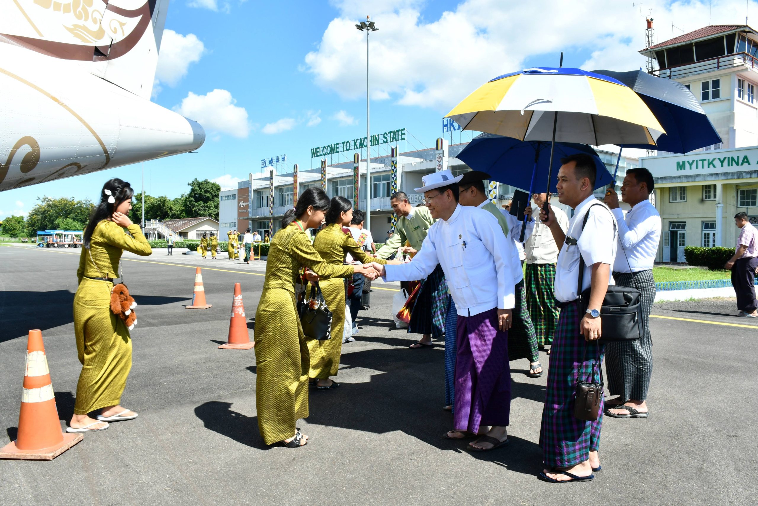 ထိုမှတစ်ဆင့် ပြည်နယ်လူမှုရေးရာဝန်ကြီး ဦးမိုးမင်းသိန်းနှင့် ပြည်နယ်အစိုးရအဖွဲ့အတွင်းရေး မှူး ဦးခင်မောင်လွင်တို့သည် ဌာနဆိုင်ရာတာဝန်ရှိသူများနှင့်အတူ မြစ်ကြီးနားလေဆိပ်၌ ၂၀၂၅ ခုနှစ်၊ အတွက် နေပြည်တော်၌ ကျင်းပပြုလုပ်သော (၂၆)ကြိမ်မြောက် မြန်မာ့ရိုးရာယဉ်ကျေးမှု အဆို၊ အက၊ အရေး၊ အတီး ပြိုင်ပွဲသို့ ဝင်ရောက်ယှဉ်ပြိုင်ခဲ့ကြပြီး ပြန်လည်ရောက်ရှိလာသော ကချင်ပြည်နယ်မှ ပြိုင်ပွဲဝင်ကိုယ်စားလှယ်အဖွဲ့ ပြန်လည်ရောက်ရှိလာမှုကို ကြိုဆိုဂုဏ်ပြုခဲ့ကြကြောင်း သိရသည်။
