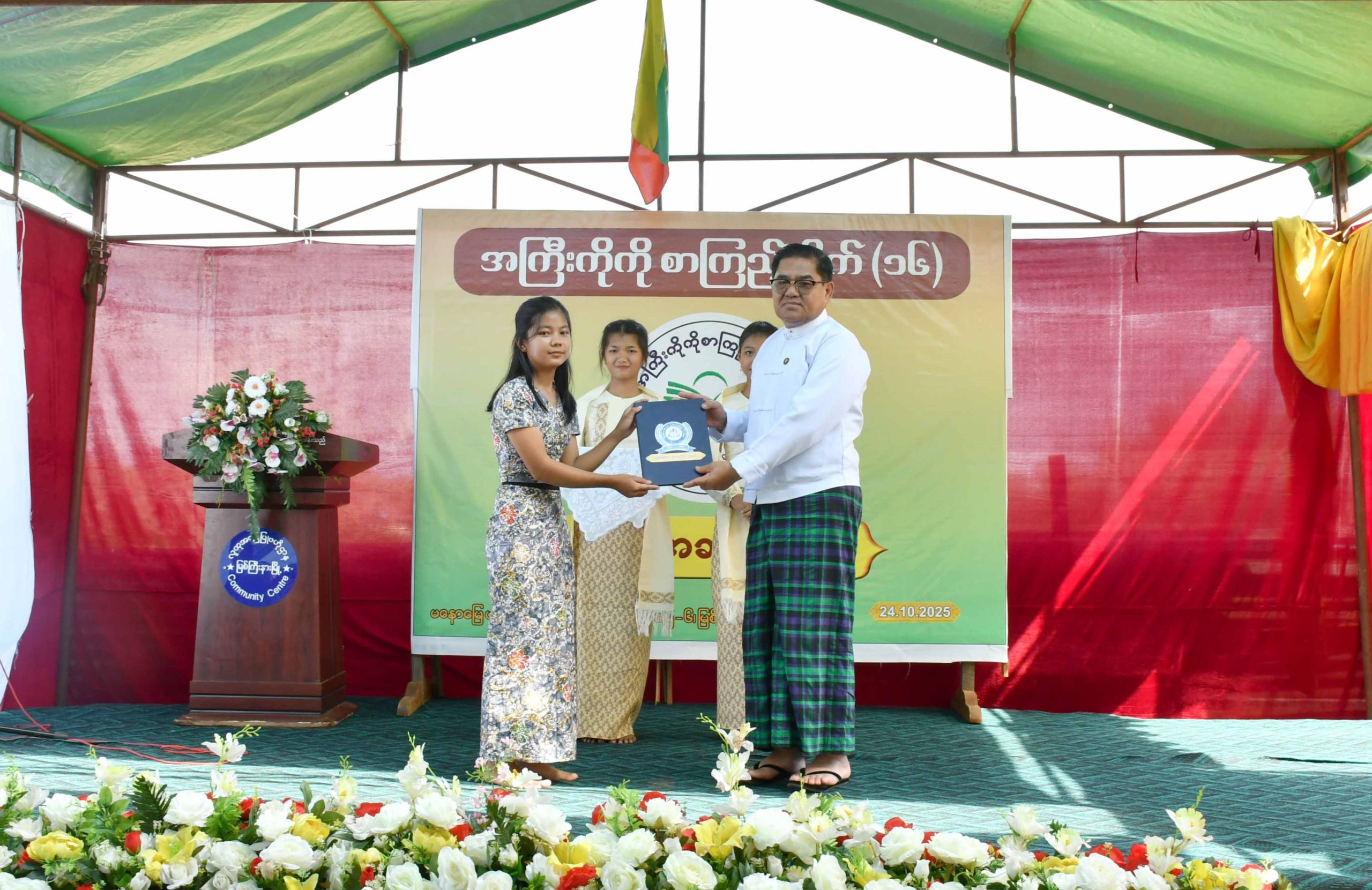 ထို့နောက် စာရေးဆရာအကြီးကိုကို (ကသာ)က (၁၆)ခုမြောက် စာကြည့်တိုက်ဖွင့်လှစ်နိုင်ရေး မနောမြေပညာရေးစင်တာမှ အရှင်ဘဒ္ဒန္တဝါသေဋ္ဌ၏ မိန့်မှာကြားမှုအပေါ် လှူဒါန်းအကောင်အထည်ဖော်ဆောင်ရွက်ခဲ့ခြင်းဖြစ်သည့် အခြေအနေများကို ရှင်းလင်းတင်ပြပြီး ပြည်နယ်ဝန်ကြီးချုပ်က မနောမြေပညာရေးစင်တာမှ ၂၀၂၅ ခုနှစ် တက္ကသိုလ်ဝင်တန်းတွင် (၃)ဘာသာဂုဏ်ထူးနှင့် (၂)ဘာသာဂုဏ်ထူးဖြင့် ထူးချွန်စွာအောင်မြင်ခဲ့သည့် ကျောင်းသူနှစ်ဦးတို့အား ဂုဏ်ပြုချီးမြှင့်ငွေများကိုလည်းကောင်း၊ ဖျော်ဖြေရေးအဖွဲ့အတွက် ဂုဏ်ပြုချီးမြှင့်ငွေကျပ်(၁၀)သိန်းကိုလည်းကောင်း၊ စာကြည့်တိုက်ဖြစ်မြောက်အောင်မြင်ရေးအတွက် ထောက်ပံ့ချီးမြှင့်ငွေကျပ် (၁၅)သိန်းကိုလည်းကောင်း ပေးအပ်ချီးမြှင့်ခဲ့ရာ ဆရာတော် ဘဒ္ဒန္တဝါသေဋ္ဌက ကျေးဇူးတင်ဝမ်းမြောက်ကြောင်းစကားပြန်လည် မြွက်ကြားခဲ့သည်။