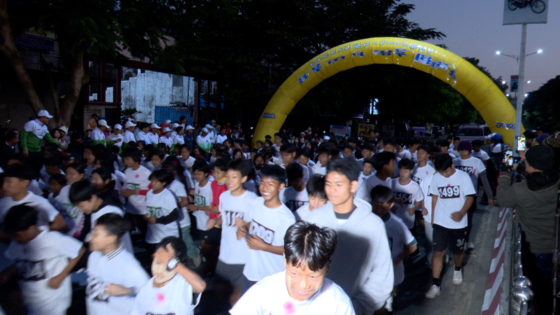 ရှေးဦးစွာ နံနက် ၆ နာရီတွင် ပြည်သူ့အားကစားကွင်းရှေ့ စုရပ်၌ မီနီမာရသွန်အပြေးပြိုင်ပွဲဝင် ဦးရေ (၃၀၀၀)ဦးတို့အား တာလွှတ်ပေးကြရာ မြန်မာနိုင်ငံအိုလံပစ်ကော်မတီ ဥက္ကဋ္ဌ၊ ပြည်ထောင်စုဝန်ကြီးက အသက်(၁၅)နှစ်အထက် ပြိုင်ပွဲဝင်များအား သေနတ်ပစ်ဖောက်၍လည်းကောင်း၊ ပြည်နယ်ဝန်ကြီးချုပ်က အသက် (၁၅)နှစ်အောက် ပြိုင်ပွဲဝင်များအား သေနတ်ပစ်ဖောက်၍လည်းကောင်း တာလွတ်ပေးကြရာ ပြိုင်ပွဲဝင်များသည် မြစ်ကြီးနားမြို့ သခင်နက်ဖေလမ်းမှတစ်ဆင့် ပြည်ထောင်စုလမ်းမကြီးအတိုင်း အောင်ဇေရန်အောင်ဘုရားထိ၊ ထိုမှတစ်ဆင့် သတ်မှတ်လမ်းကြောင်းအတိုင်း ပြည်သူ့အားကစားကွင်းအတွင်းသို့ ပြိုင်ပွဲဝင်ကြရာ ပြေးလမ်းတစ်လျှောက်ရှိ ရပ်ကွက်များအလိုက် ရပ်ကွက်နေပြည်သူများက မီနီမာရသွန်အပြေးပြိုင်ပွဲဝင်များအား ကြိုဆိုအားပေးခဲ့ကြပြီး ရေသန့်ဘူးများနှင့် အမောပြေစားသောက်ဖွယ်များကို ကျွေးမွေးပေးခဲ့ကြသည်။
