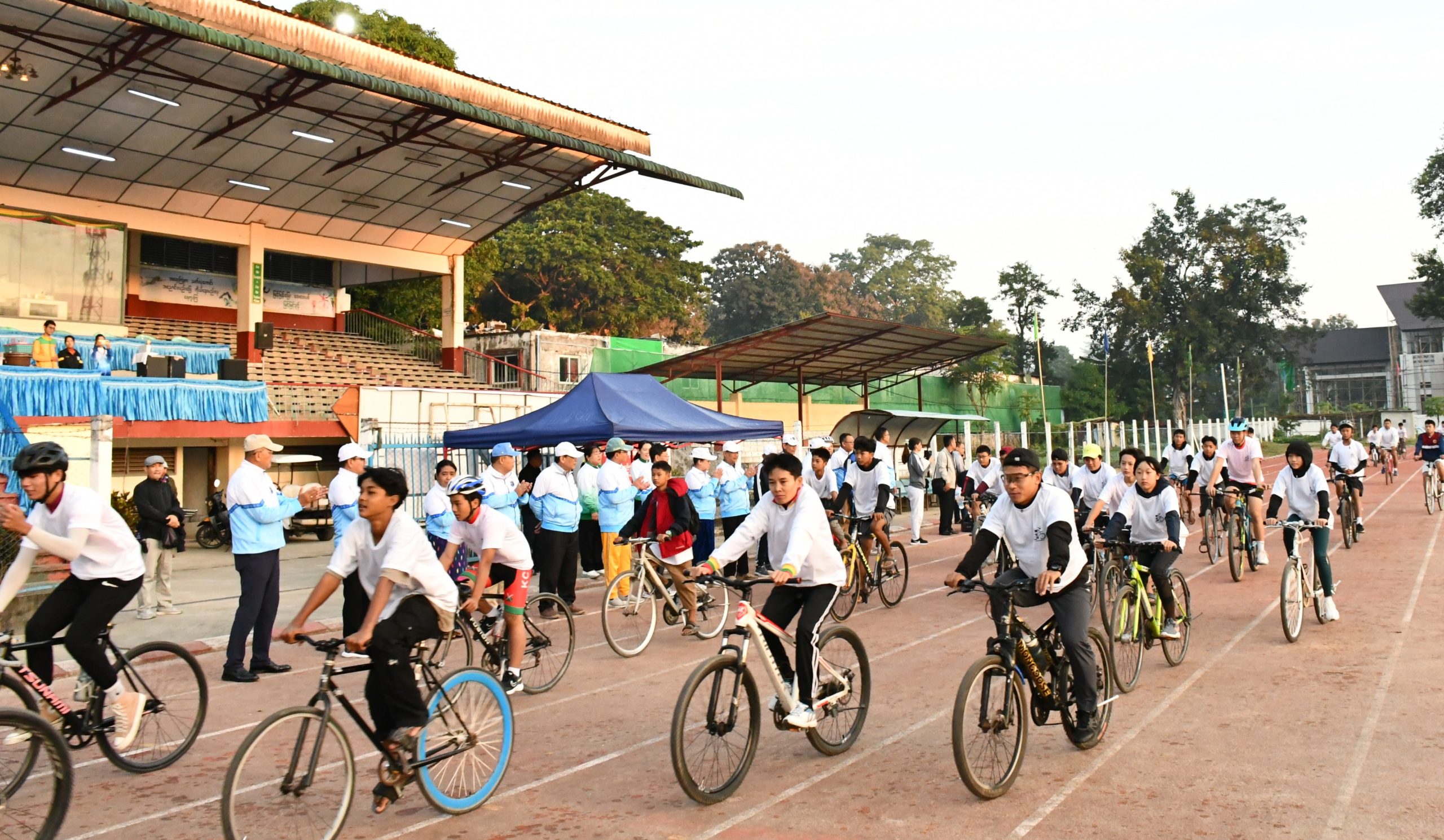 ကချင်ပြည်နယ်၊ မြစ်ကြီးနားမြို့၌ မူးယစ်ကင်းစင် ကချင်ပြည်နယ်တစ်ခွင် အားကစားလှုပ်ရှားမှုအဖြစ် နိုင်ဝင်ဘာ ၃၀ ရက် နံနက်ပိုင်းက လူထုစက်ဘီးစီးနင်းပွဲကို ပြည်နယ်ပြည်သူ့အားကစားကွင်း အထူးတန်းပွဲကြည့်စင်ရှေ့၌ ကျင်းပပြုလုပ်ရာ မြန်မာနိုင်ငံအိုလံပစ်ကော်မတီဥက္ကဋ္ဌ၊ အားကစားနှင့်လူငယ်ရေးရာဝန်ကြီးဌာနနှင့် ဟိုတယ်နှင့်ခရီးသွားလာရေးဝန်ကြီးဌာန၊ ပြည်ထောင်စုဝန်ကြီး Jeng Phang နော်တောင်၊ ပြည်နယ်ဝန်ကြီးချုပ် ဦးခက်ထိန်နန်နှင့် တာဝန်ရှိသူများ တက်ရောက်ခဲ့ကြ သည်။