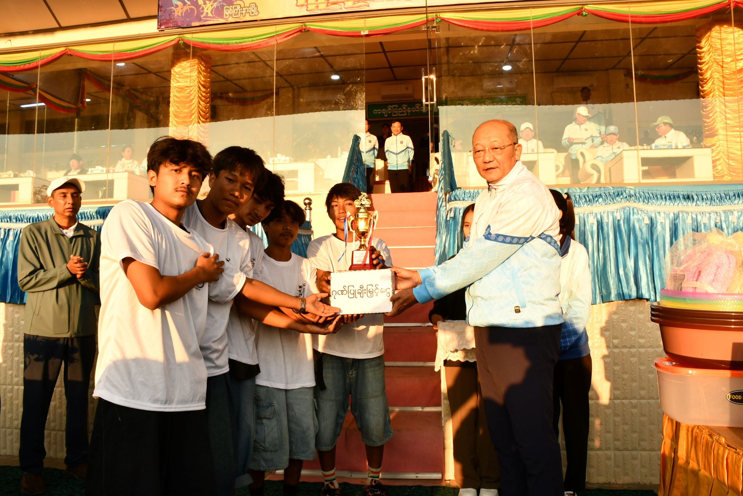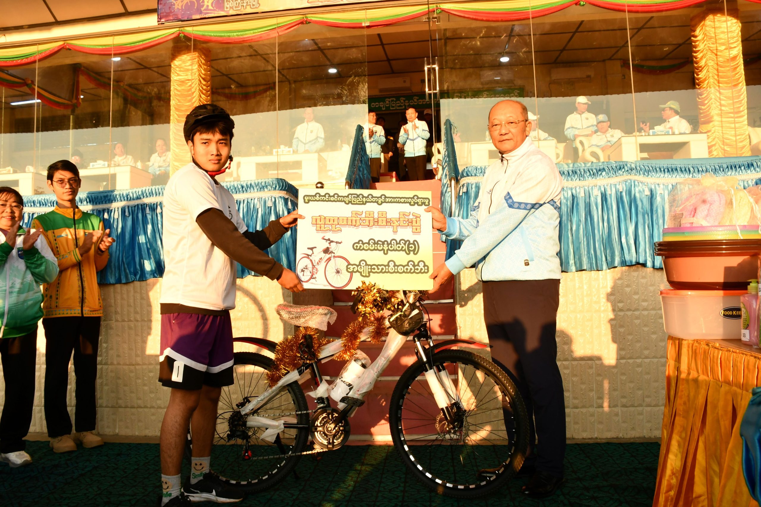 ထို့နောက် ပြည်နယ်ဘောလုံးကွင်းအတွင်း၌ ပြိုင်ပွဲဝင်များ ပြန်လည်ဝင်ရောက်လာမှုကို မြန်မာနိုင်ငံအိုလံပစ်ကော်မတီ ဥက္ကဋ္ဌ၊ ပြည်ထောင်စုဝန်ကြီး၊ ပြည်နယ်ဝန်ကြီးချုပ်နှင့် တာဝန်ရှိသူများက အားပေးကြိုဆိုခဲ့ကြပြီး အားကစားနှင့်ကာယပညာဦးစီးဌာနမှ အရာထမ်း/အမှုထမ်းများနှင့် အားကစားဆပ်ကော်မတီအသီးသီးမှ တာဝန်ရှိသူများက စက်ဘီးစီးနင်းပွဲတွင် ပါဝင်သူများအား မုန့်နှင့်ရေသန့်ဘူးများကို ကျွေးမွေးပေးကြကာ ကံစမ်းမဲဖောက်ပေးခြင်းတို့ကိုလည်း ဆောင်ရွက်ခဲ့ကြသည်။ ယင်းနောက် မြစ်ကြီးနားမြို့ရှိ လူငယ်စက်ဘီးစတန့်အဖွဲ့က စက်ဘီးစီးစွမ်းရည်ဖြင့် သရုပ်ပြသမှုကို ကြည့်ရှုအားပေးခဲ့ကြပြီး စက်ဘီးစီးနင်းပွဲ ပါဝင်ဆင်နွှဲသူများ ကံစမ်းမဲများ ဖွင့်ဖောက်၍ ဆုများကို ပေးအပ်ချီးမြှင့်ရာ မြန်မာနိုင်ငံအိုလံပစ်ကော်မတီဥက္ကဋ္ဌ၊ ပြည်ထောင်စုဝန်ကြီးက စက်ဘီးစီးစတန့်ပြသည့် လူငယ်အဖွဲ့အတွက် ချီးမြှင့်ငွေများနှင့်အမျိုးသားစီး စက်ဘီးကံစမ်းမဲပေါက်သူတစ်ဦးအား ဆုလက်ဆောင်အဖြစ် စက်ဘီးတစ်စီးကို ပေးအပ်ချီးမြှင့်ခဲ့ကြပြီး ပြည်နယ်ဝန်ကြီးချုပ်က အမျိုးသမီးစီး စက်ဘီးမဲပေါက်သူအား စက်ဘီးတစ်စီးကိုလည်းကောင်း၊ ပြည်နယ်တရားလွှတ်တော်တရားသူကြီးချုပ်နှင့် ပြည်နယ်အစိုးရအဖွဲ့ဝင်များ၊ တာဝန်ရှိသူများက ကျန်စက်ဘီးစီးနင်းပွဲ ပါဝင်ဆင်နွှဲကြသူအားလုံးအား အိမ်သုံးပစ္စည်းများကို ကံစမ်းမဲဖောက်ပေးအပ်ခဲ့ကြကြောင်း သိရသည်။